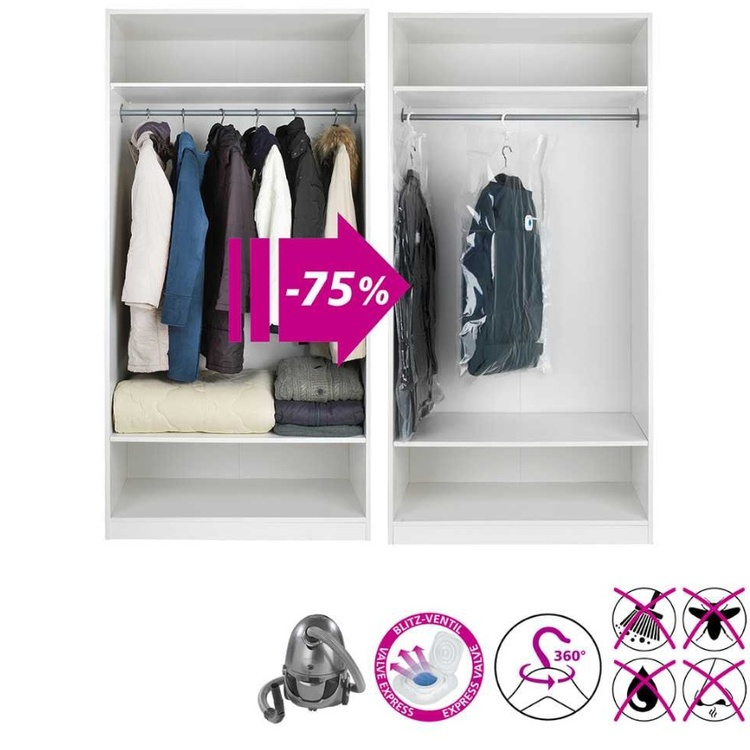 Smart vacuum bag with hanger measuring 70 x H105 cm.