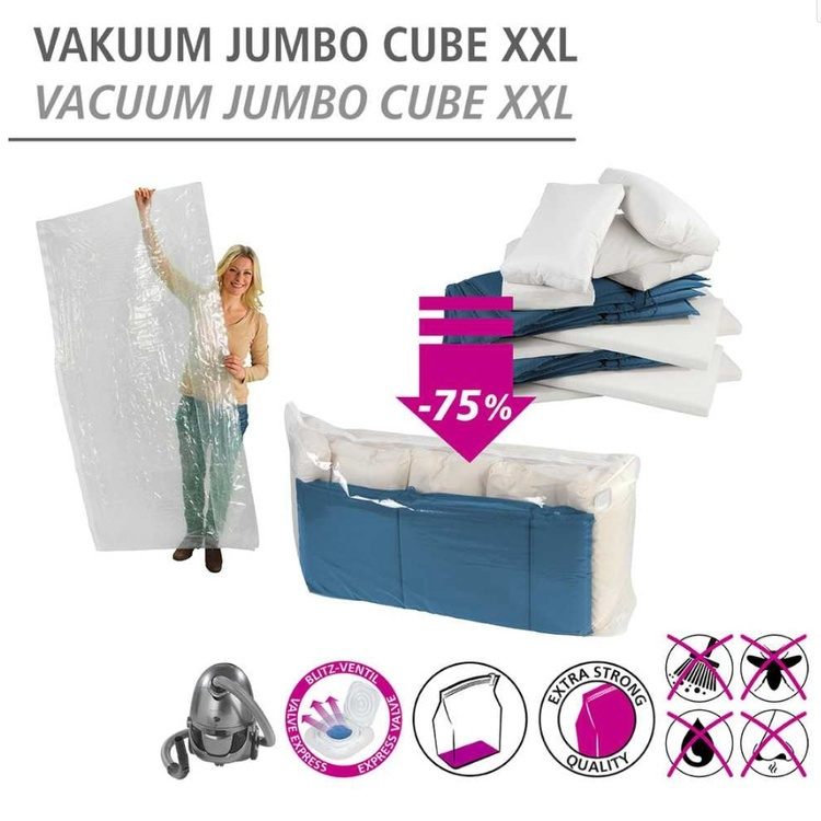 The large vacuum bag offers ideal storage options for seasonal clothing or duvets.
