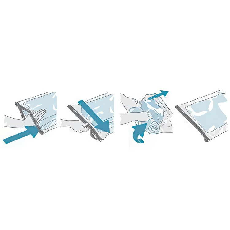 Smart storage on your trip! How about always be able to bring your own comfortable pillow on the trip, packed flat like a pancake? The vacuum bag is designed so that you do not need a vacuum cleaner to remove the air, but you roll it out via valves that sit on one side of the bag. -
