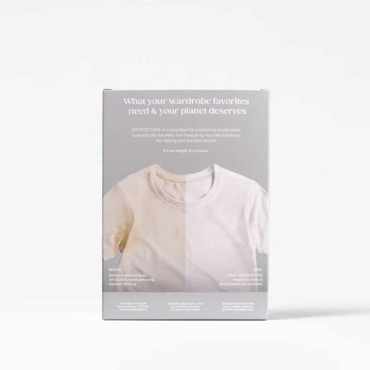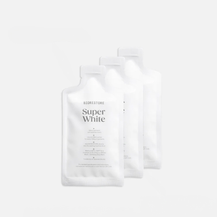 Biorestore’s Super White detergent is a specially formulated detergent that restores the colour of your white clothes without using bleach. It is specifically designed to remove body oils, stubborn stains and yellowing that often negatively affect white garments. It is gentle on fabrics, fragrance-free and can also be used on coloured clothes to provide a deeper clean without fading or affecting the colour.